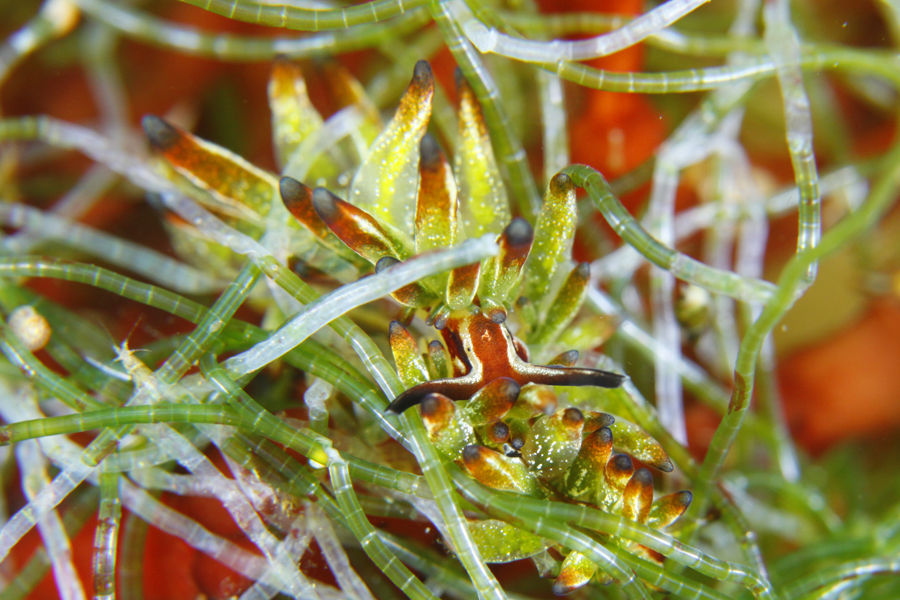 この子が食べ終えたホソジュヅモは、中の葉緑素が無くなって透明になってますね
