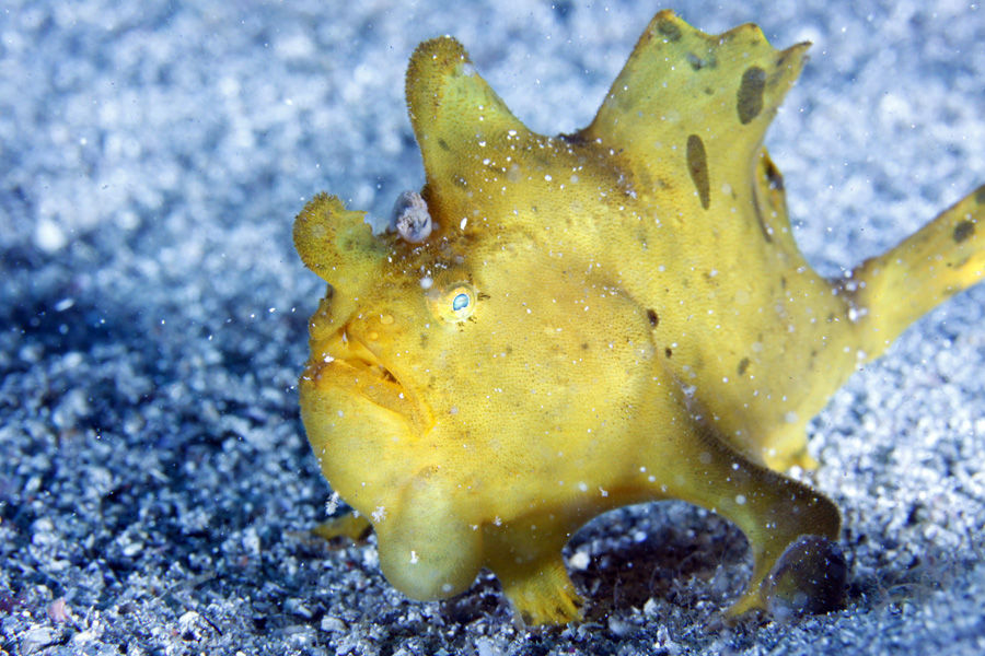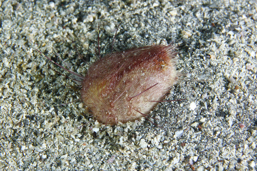 砂地の中層を移動していると、底に見慣れない生物を・・・
