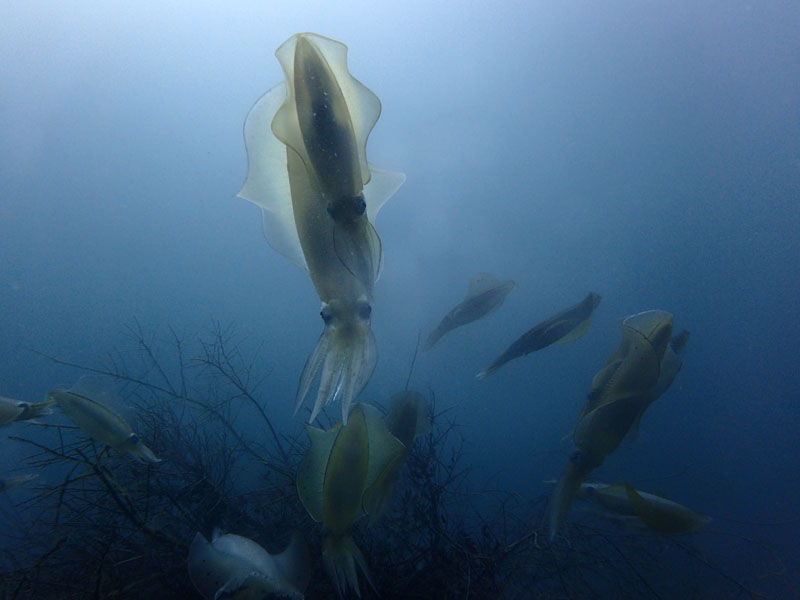ヨコバマでも10杯ほどのイカの産卵を見れて