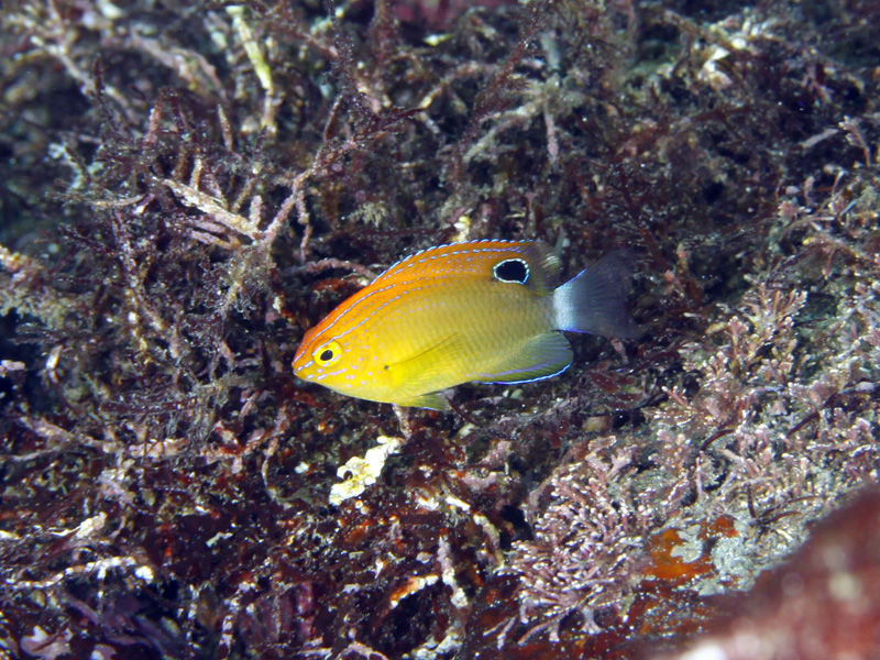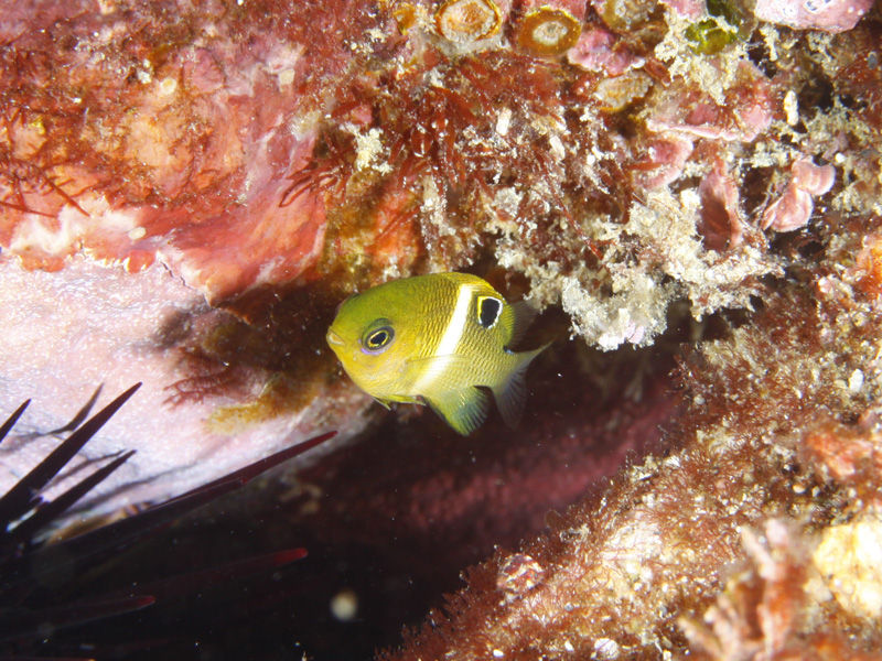 クロメガネスズメダイなど、南からの来遊魚が遊んでおります