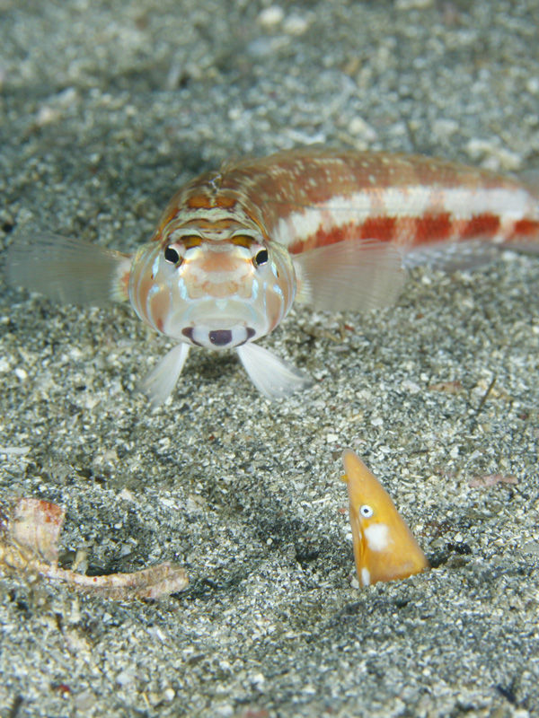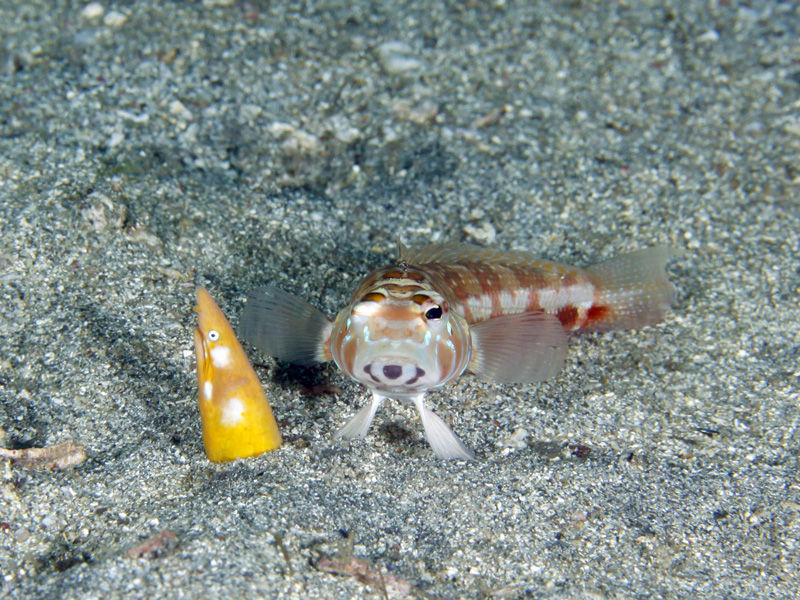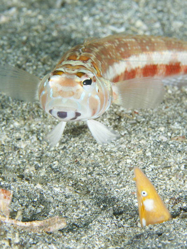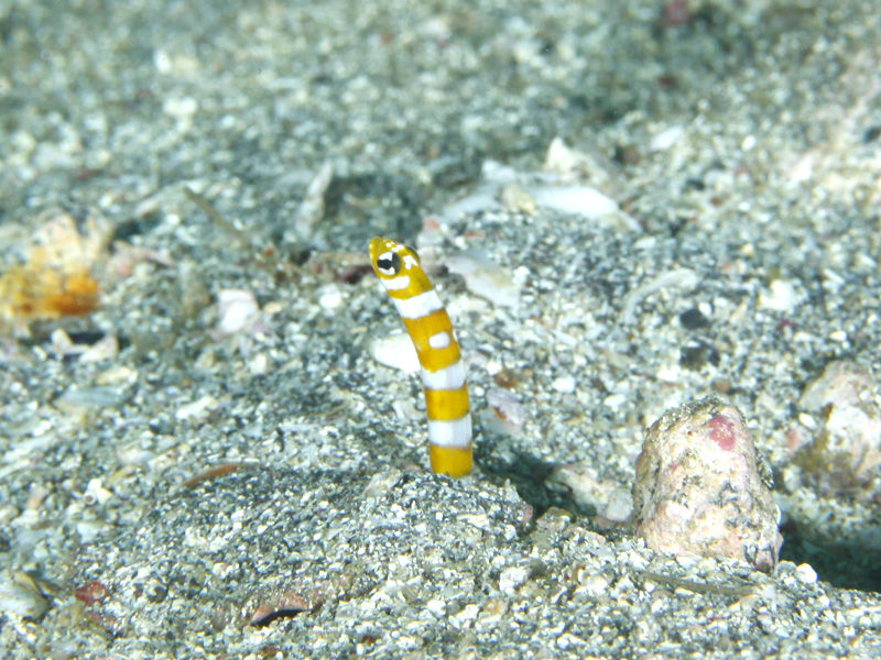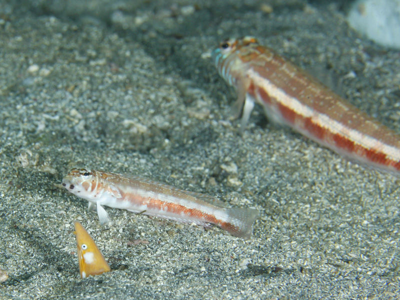 ホオジロゴマウミヘビの死角にいるっぽいトラギスは気が付かれていない??