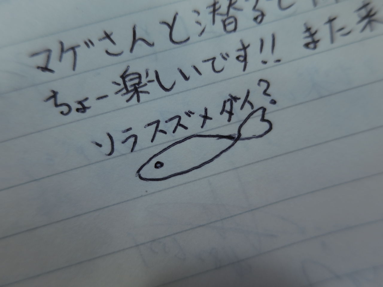 僕のLOGには、お客様のコメントとお名前、そして今日見た魚の絵を強要しております