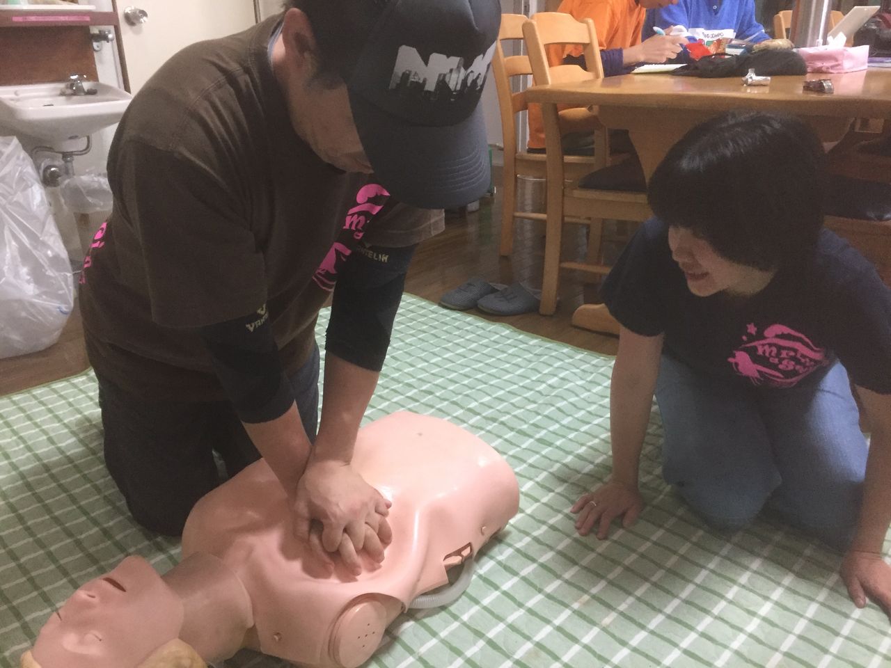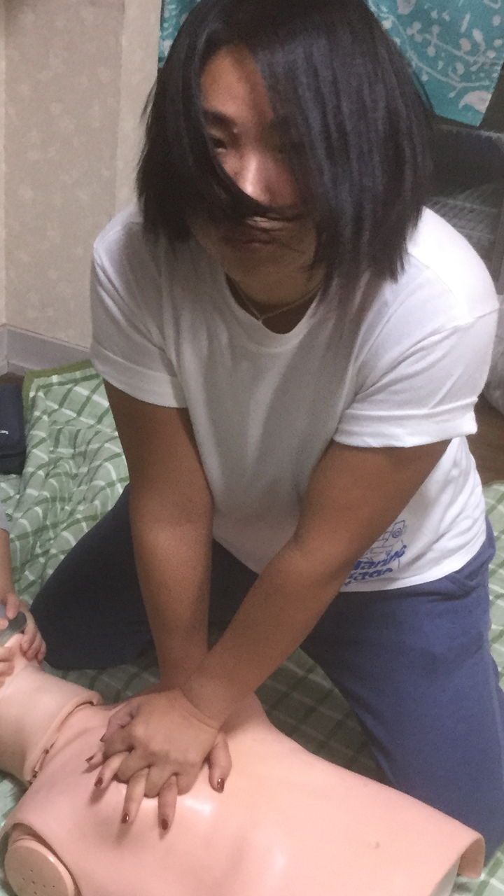 これはEFR1次ケアコースで、CPR中に真剣な顔で振り返ったOMIちゃんだ