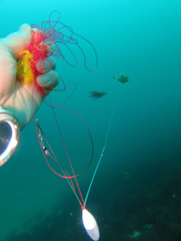 水中に釣り糸がなが~~い距離伸びていたので、危険だなぁと思って手繰ってゆくと・・・