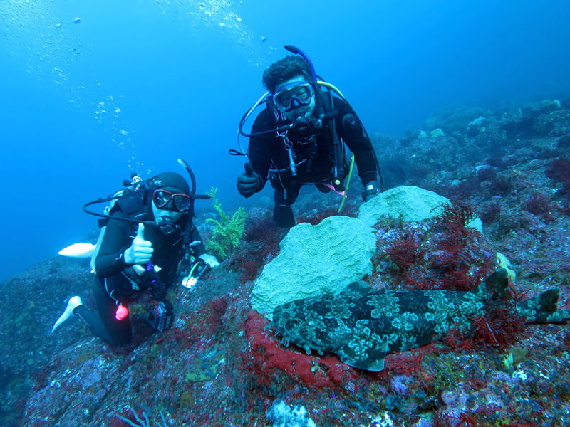 潜り終えてお腹いっぱい胸いっぱいのはずのマリステ軍団でしたが、この日はなんと・・・