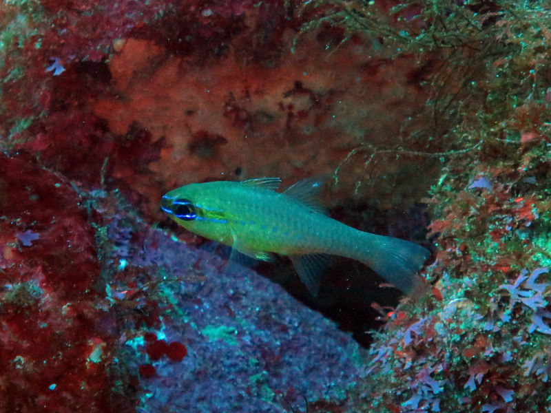 ヘンテコ模様のミツボシクロスズメダイを教えてもらいました(笑)