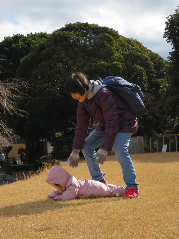 人生初めての芝生と坂道に苦戦する娘ちゃんですが、この日はIsamyさんのご家族とアニマルキングダムでキリンと戦ってきました