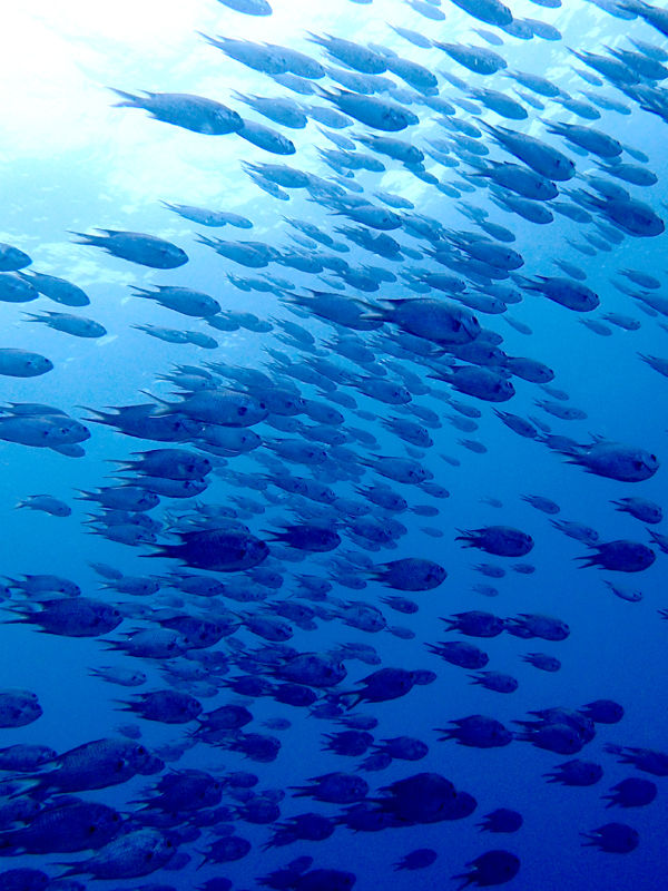 脇の浜でスズメダイやキビナゴなどの群れがイイ感じです