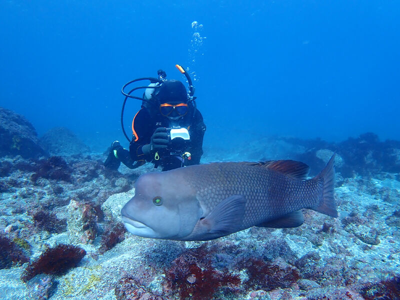 脇の浜に出没するコブダイの中吉君がめちゃ来たなぁ
