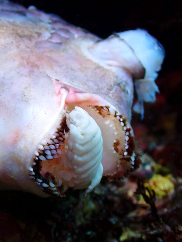 ブダイの亡骸があったのでよく見てみると、口から出ているじゃないですかぁ