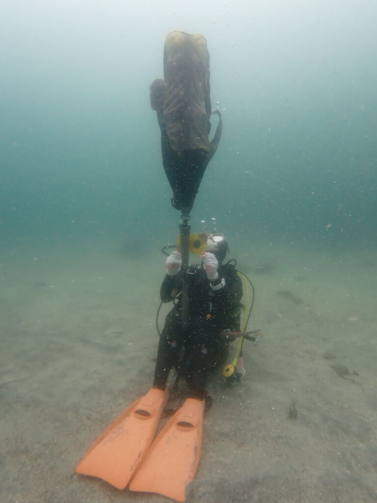 メッシュバッグに入れて入水っ