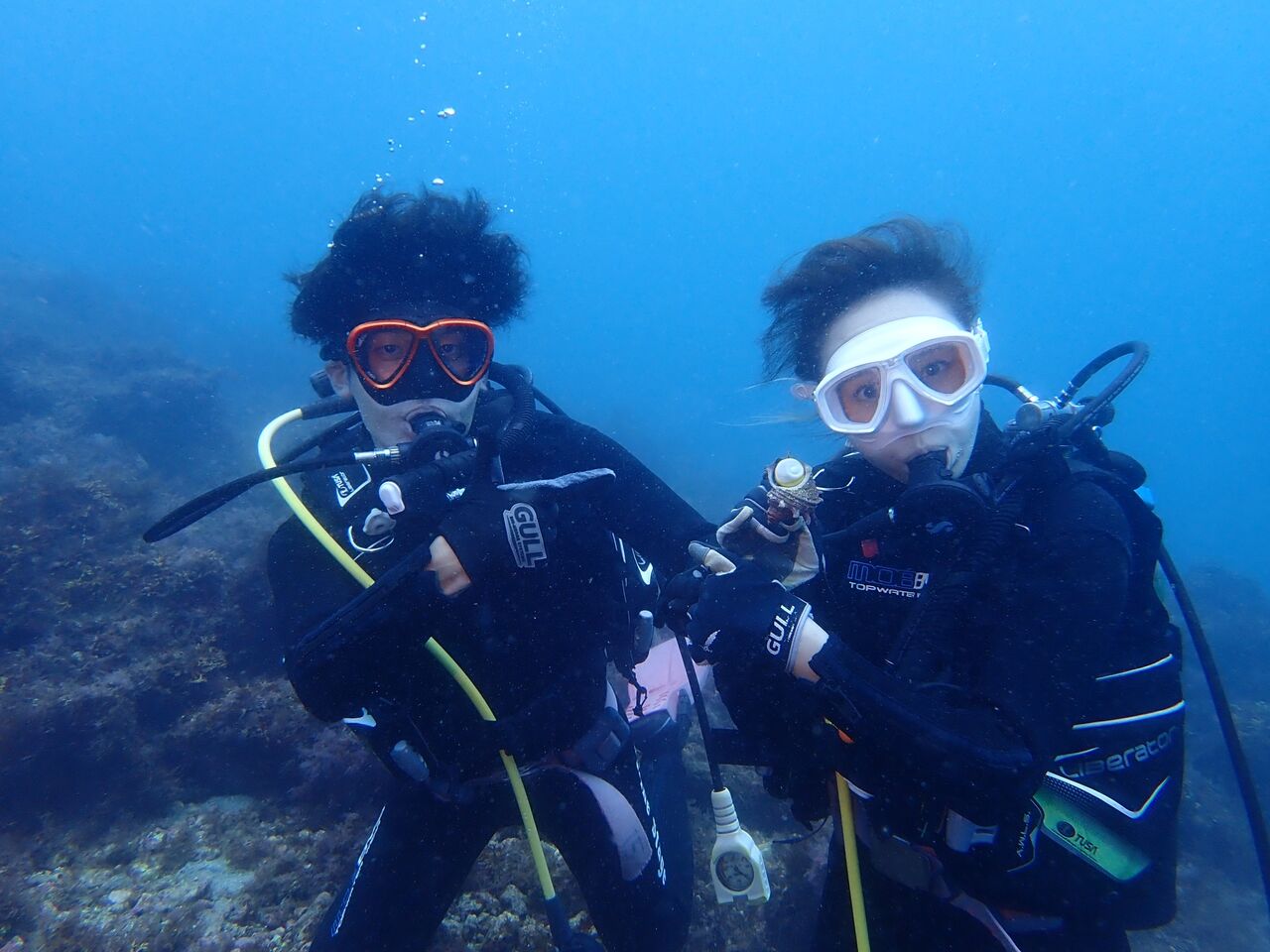 時化でCloseだったはずの富戸の海を、体験ダイビングで満喫されたそうな(笑)