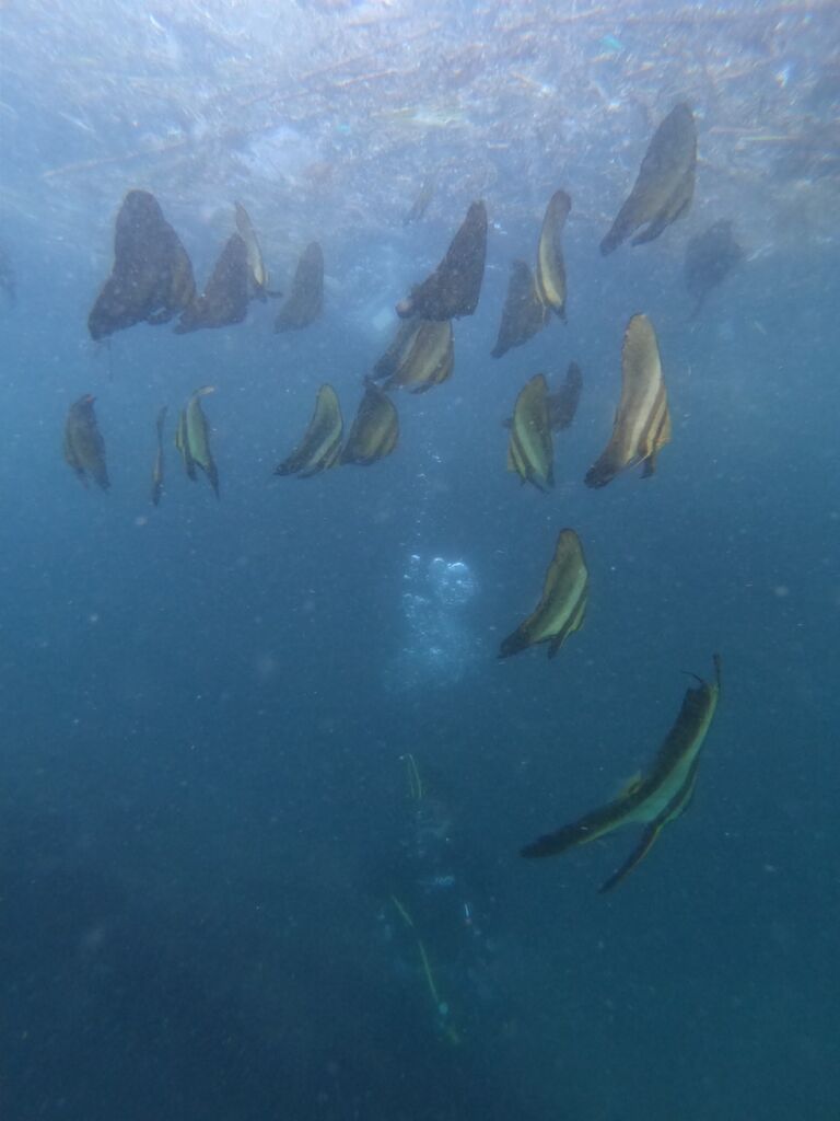 ナンヨウツバメウオの群れの中に、ミカヅキツバメウオを発見っ