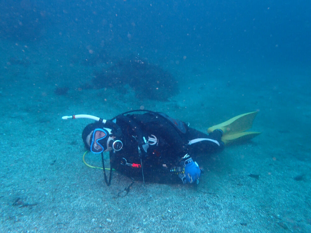 そんなまったりダイブを楽しんでいると、海から上がってきたウッシーちゃんが・・・