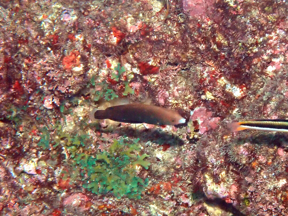 ミスジスズメダイの岩にメガネハギが同棲はじめました