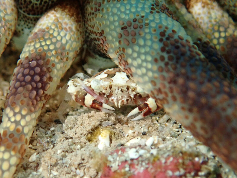 ハクセンアカホシとマルガザミとゴミのようなエビが一緒にいたり・・・