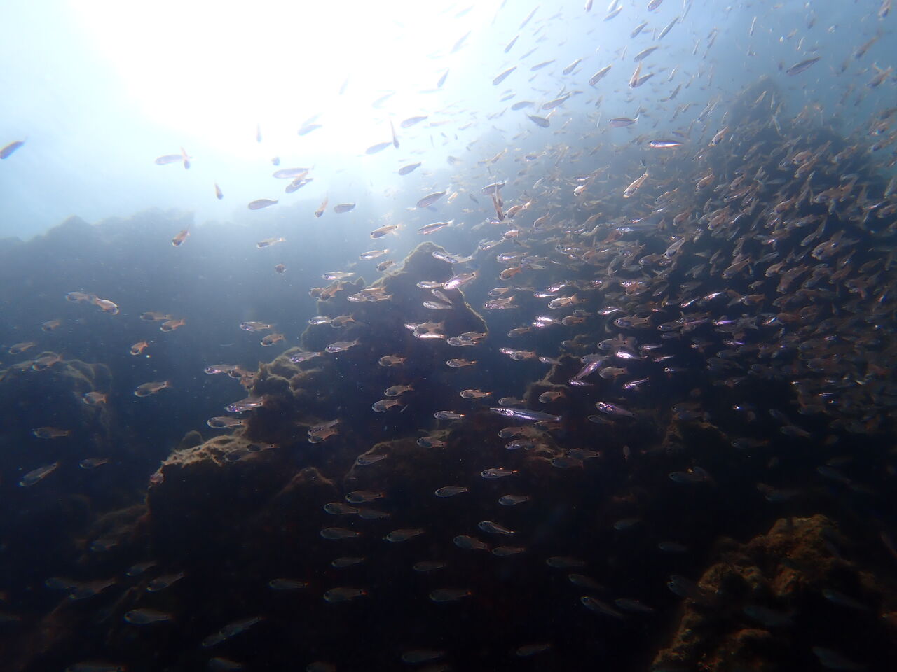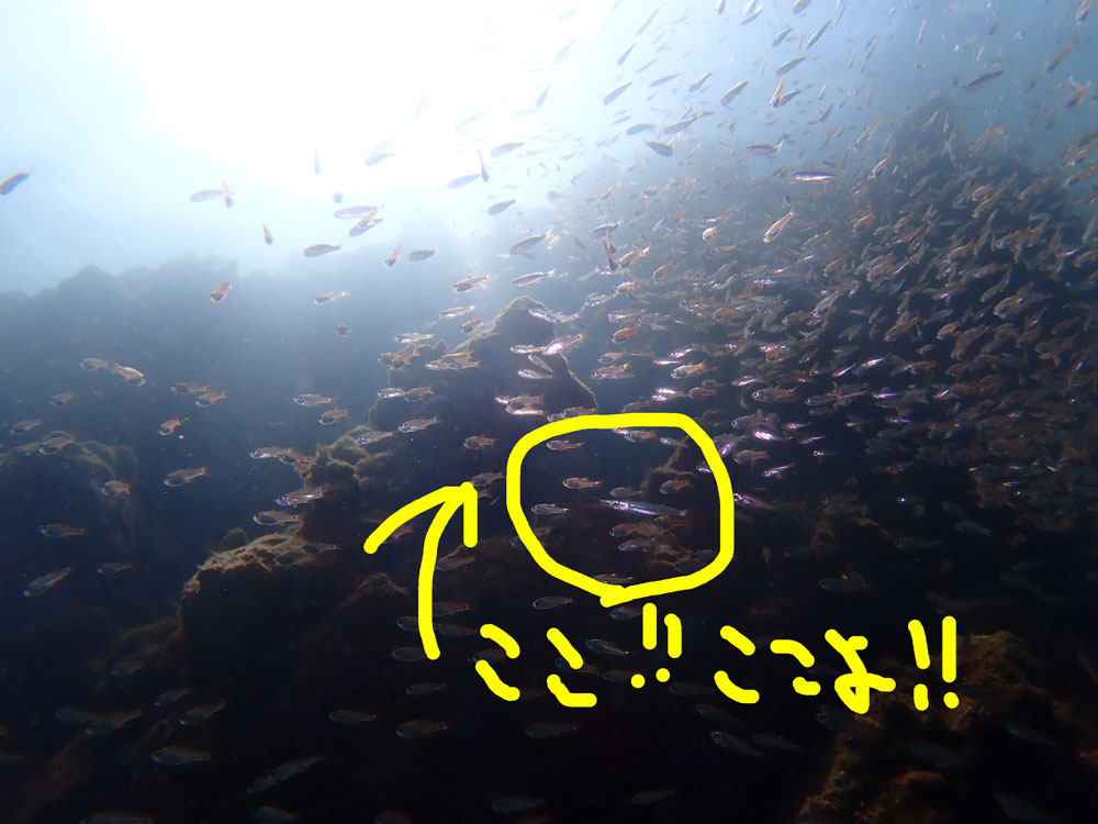 まぁ濁っていると言っても7mくらいは見えるので、あとライト持ってきていただけると安心ですね