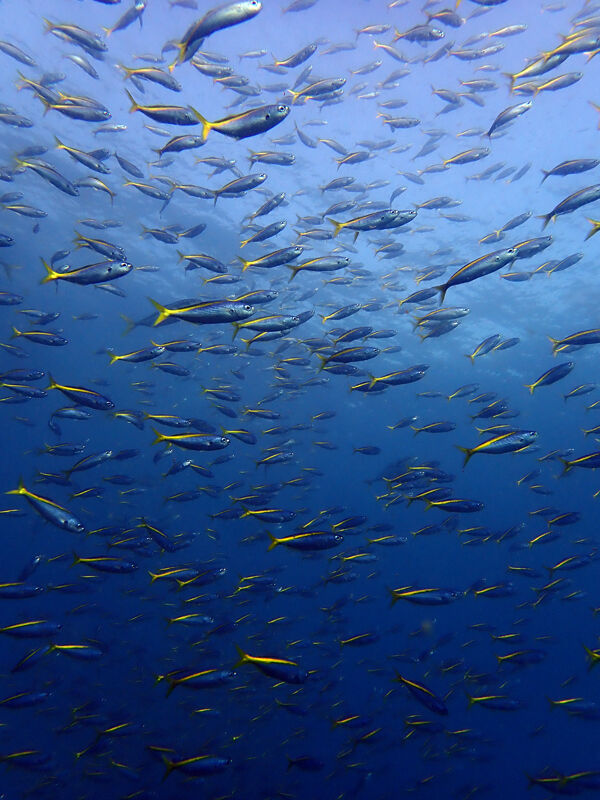 群れの中にはイナダがウロウロ…