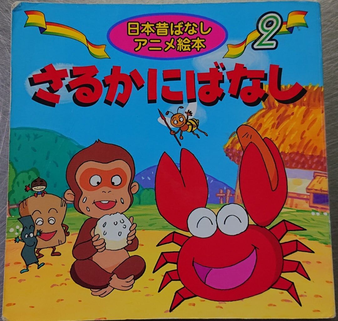 母カニがサルの投げた柿で粉々になって死んで、子ガニが復習し、サルの首をちょん切る的なお話