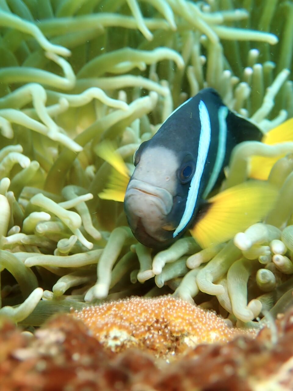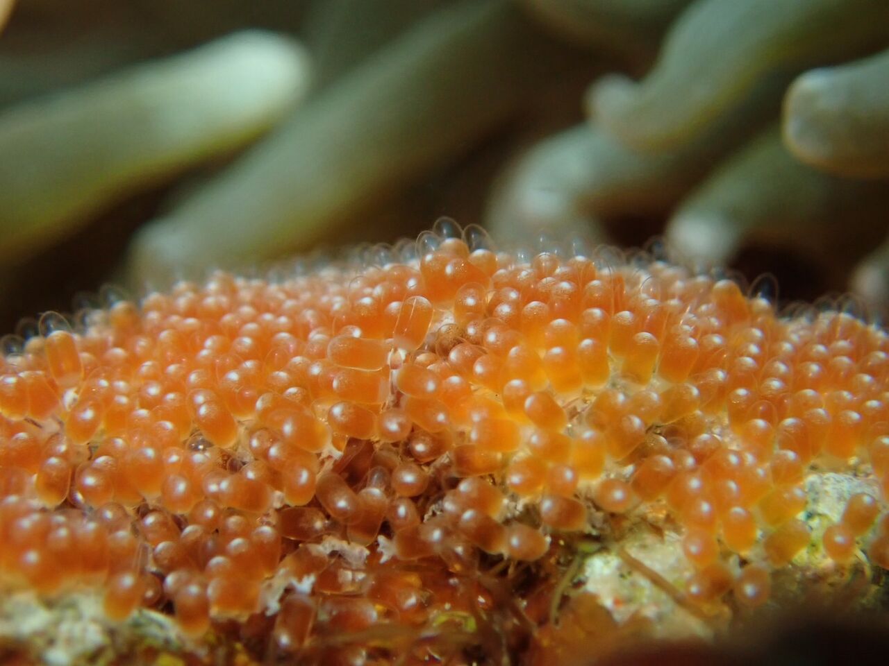 クマノミは今シーズン2回目の産卵で奇麗なオレンジ卵がありますん