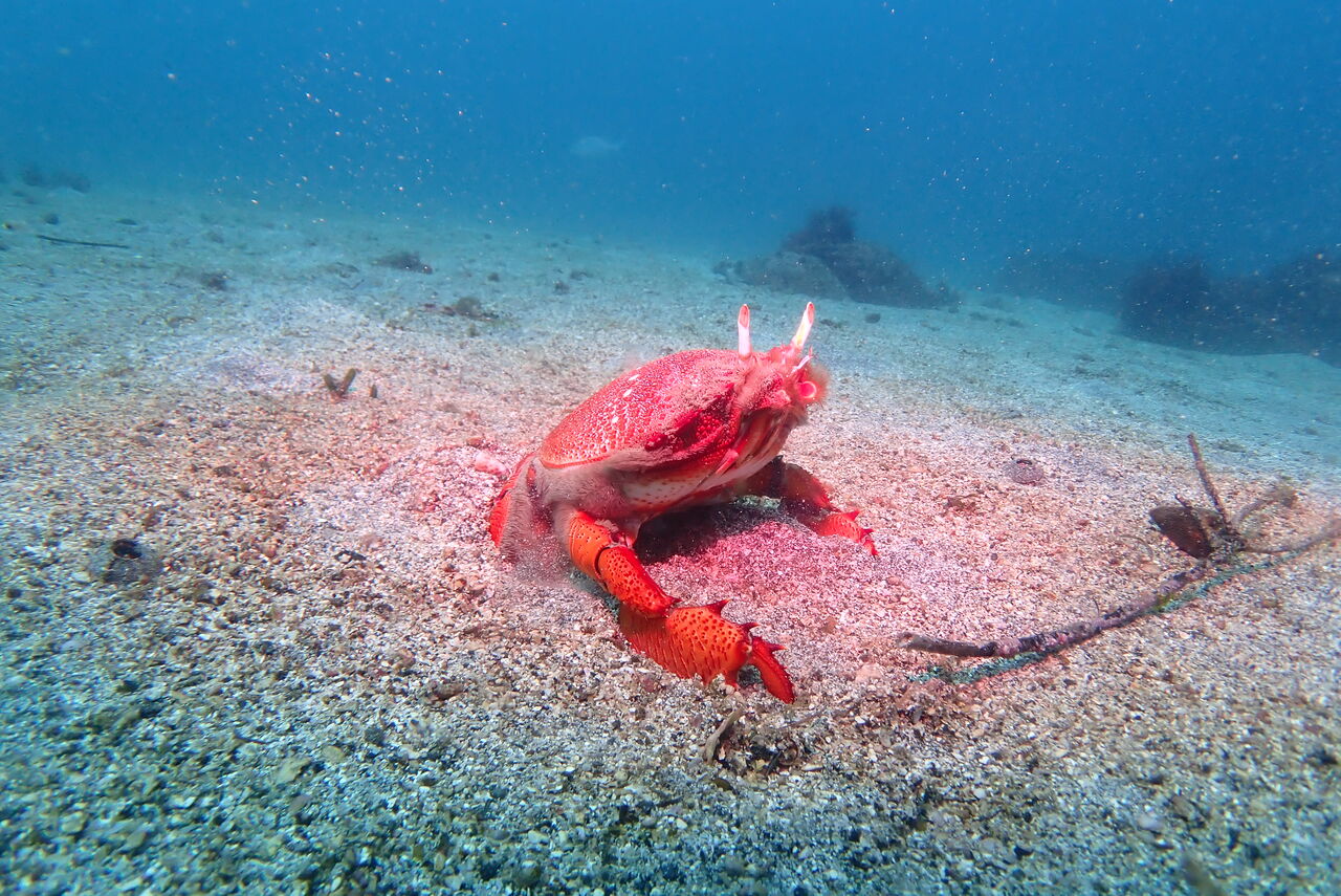お腹に沢山の卵をつけた雌の個体です