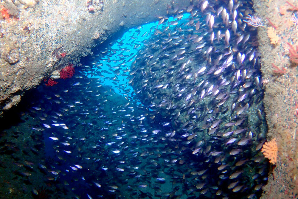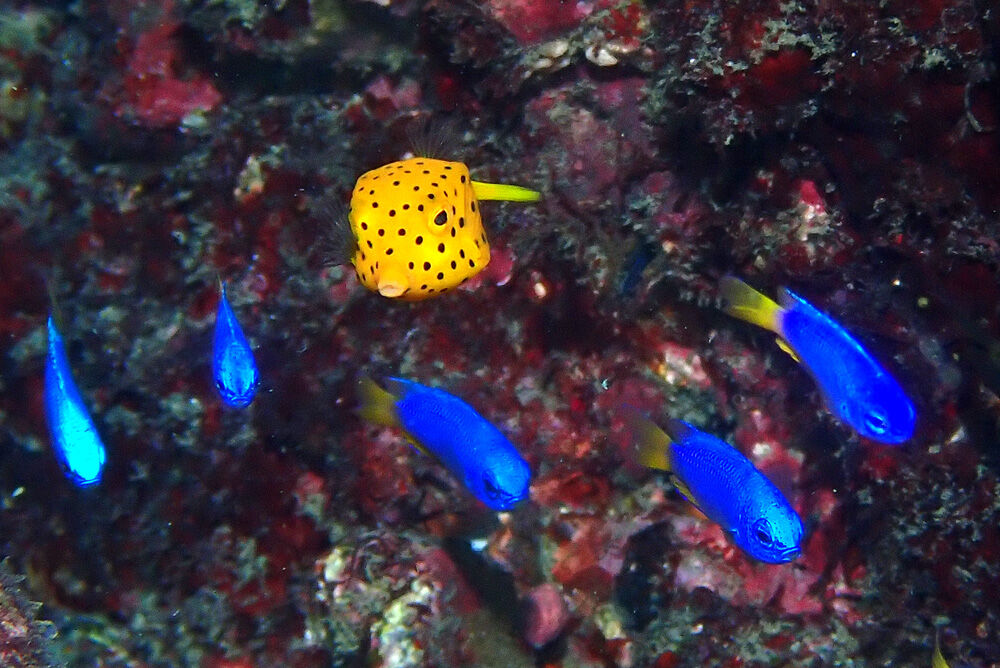 体側の小さな黒点を担いでいるというところから命名されたコクテンカタギ、南国では100尾を超える群れを成すんですよ